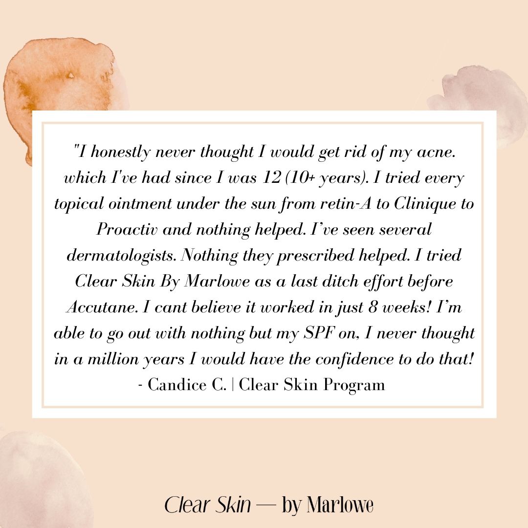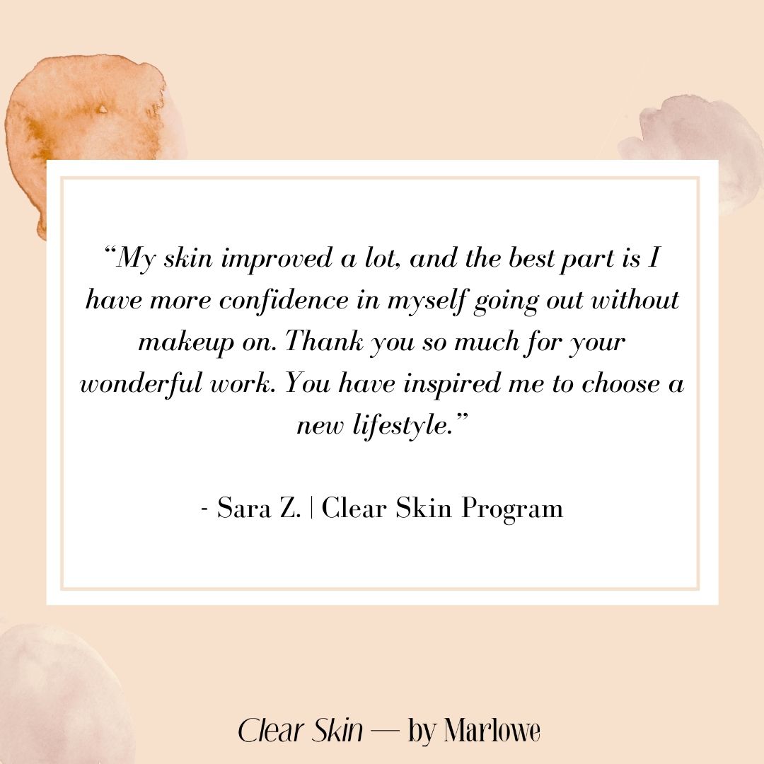 July 29, 2020 by Foods in your fridge are more powerful at clearing acne than jars in your bathroom vanity. I outline 6 different causes for acne in my Clear Skin Program – but ultimately there is one common denominator: inflammation. What we eat either fans the fires of inflammation or extinguishes it. The 6 foods listed here all help reduce inflammation and provide you with a variety of nutrients critical for clear skin: 1. Flaxseed Contains fiber to aid elimination and omega-3’s to reduce inflammation. 2. Turmeric + Black Pepper When combined, turmeric and black pepper deliver powerful anti-inflammatory benefits. 3. Hemp Seeds Contain anti-inflammatory omega-3s and easy to digest plant protein. 4. Carrots Carrots and other orange foods are high in Vitamin A, a nutrient critical for clear skin. A Vitamin A deficiency is a known cause of acne. 5. Dark Leafy Greens Rich in fiber, vitamins, and phytochemicals to aid in elimination and keep your skin clear. Kale, collards, chard, arugula, rocket – there are many options to choose from. Eat greens every day. 6. Wild Salmon A great source of omega-3, an essential nutrient for clear skin. Avoid farmed salmon, which tends to be higher in pro-inflammatory omega-6. I struggled with acne for years and tried just about every over the counter remedy, and was prescribed birth control and eventually Accutane. But, the only thing that worked was upgrading my diet to address my nutrition deficiencies, inflammation, digestive issues/constipation, and hormonal imbalances. (It was so effective, I changed career paths to study holistic nutrition and cooking!) If you struggle with acne, check out my clear skin program + meal plan.